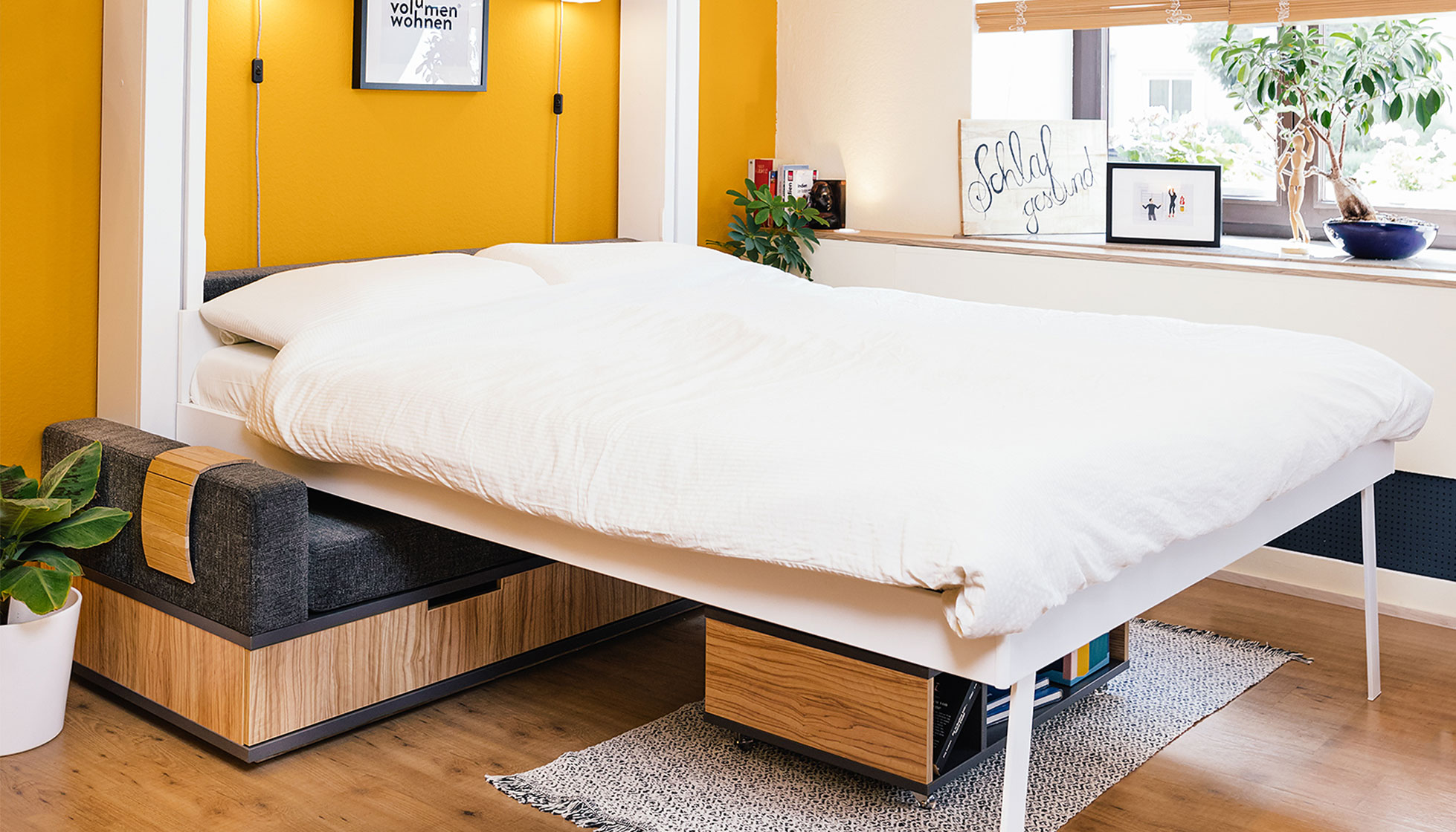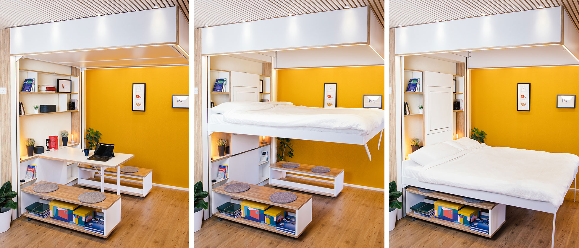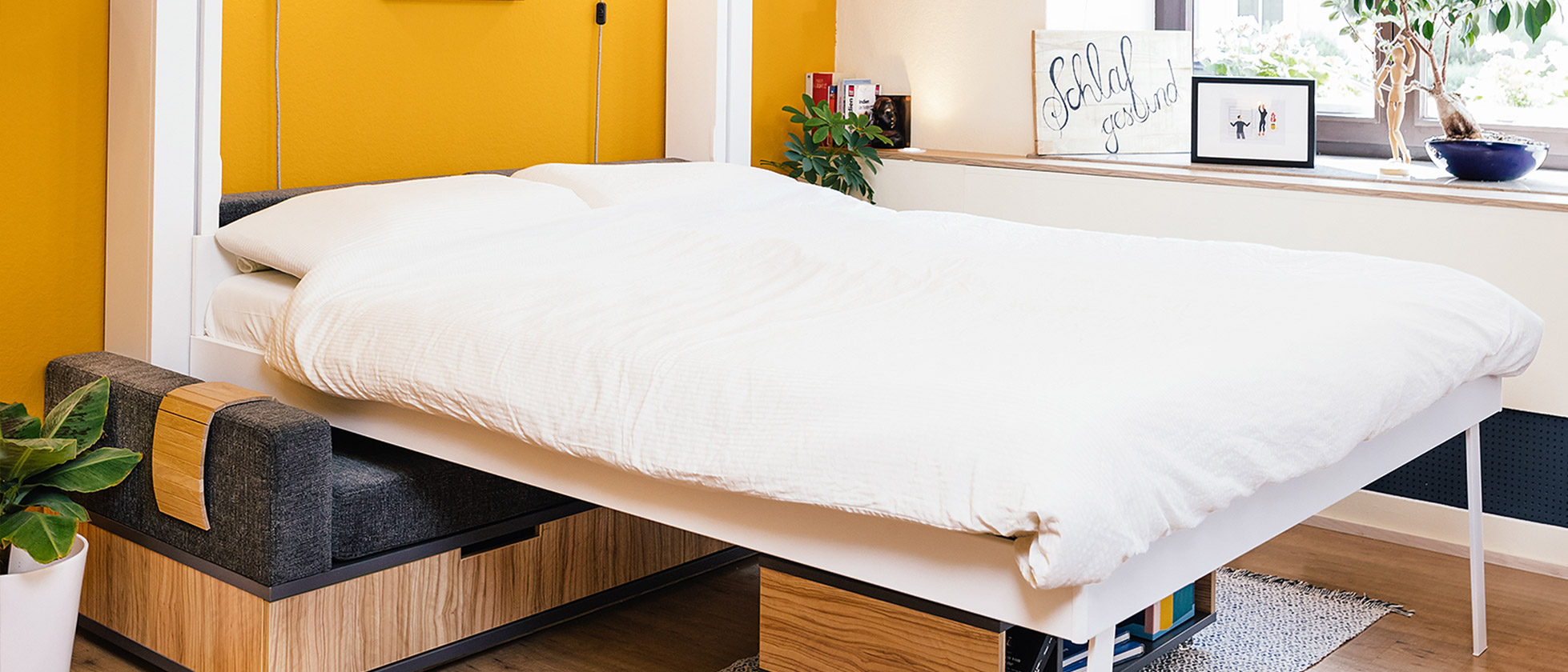 Lassen Sie ihr Bett³ innerhalb weniger Sekunden per Knopfdruck in der Decke verschwinden und schaffen damit neue Fläche in Ihrem Zuhause. Wie Sie diese Fläche nutzen ist vollkommen Ihnen überlassen: eine gemütliche Couch aufstellen, als Spielfläche für Kinder oder als Ihre neue Meditationsecke? Bett³ Element ermöglicht Ihnen all das und noch mehr. Mehr Lebensqualität innerhalb von bestehenden Strukturen - die Möglichkeiten sind beinahe unbegrenzt.