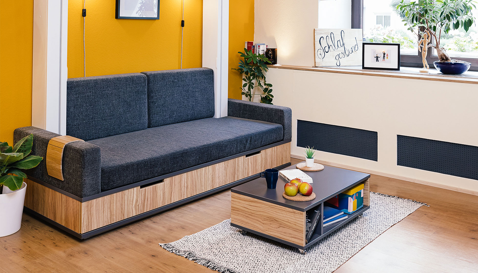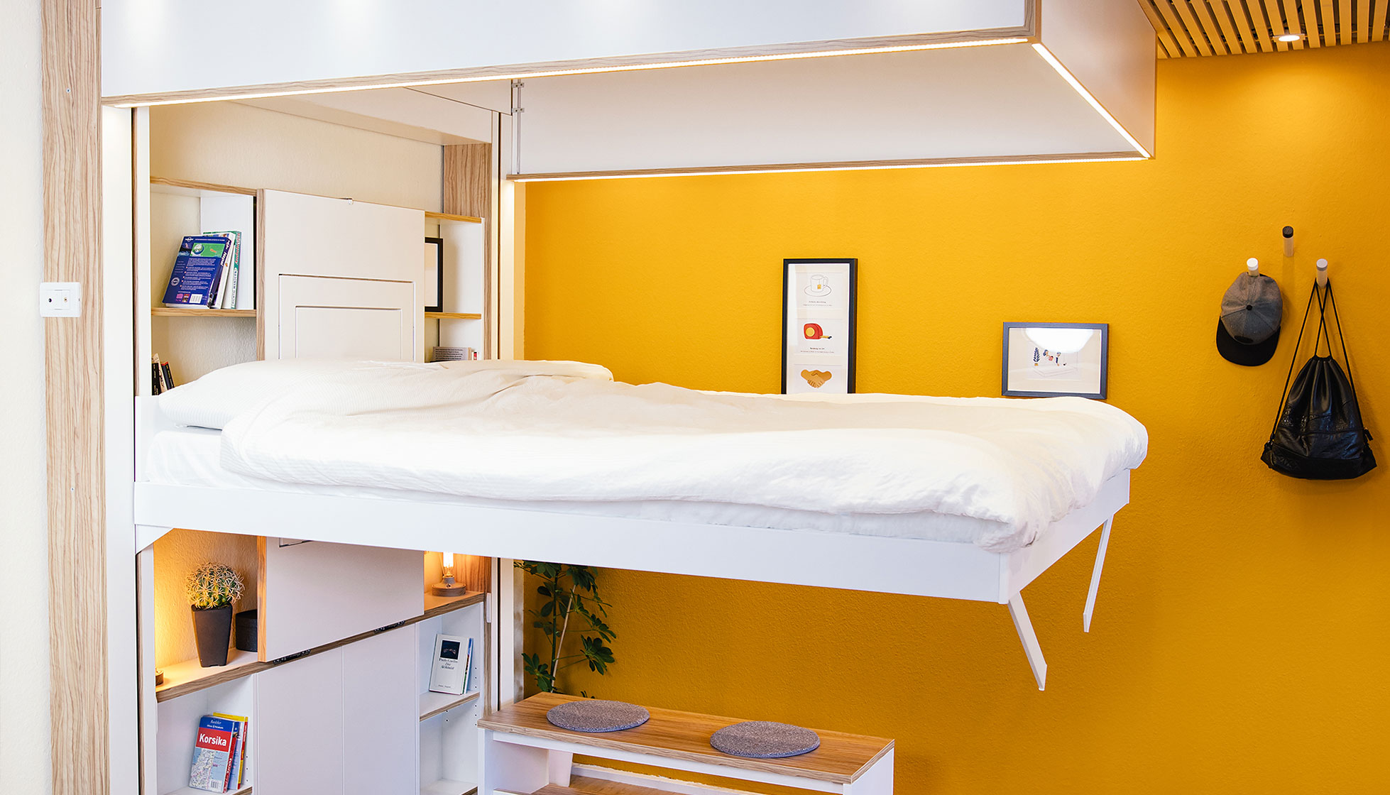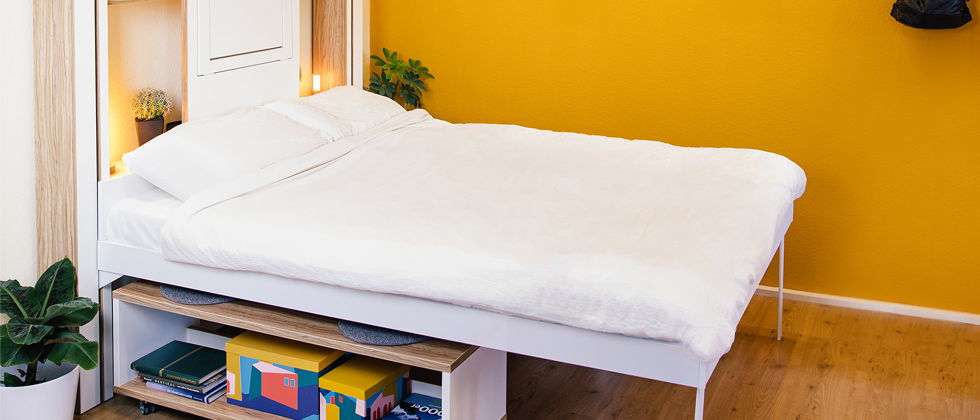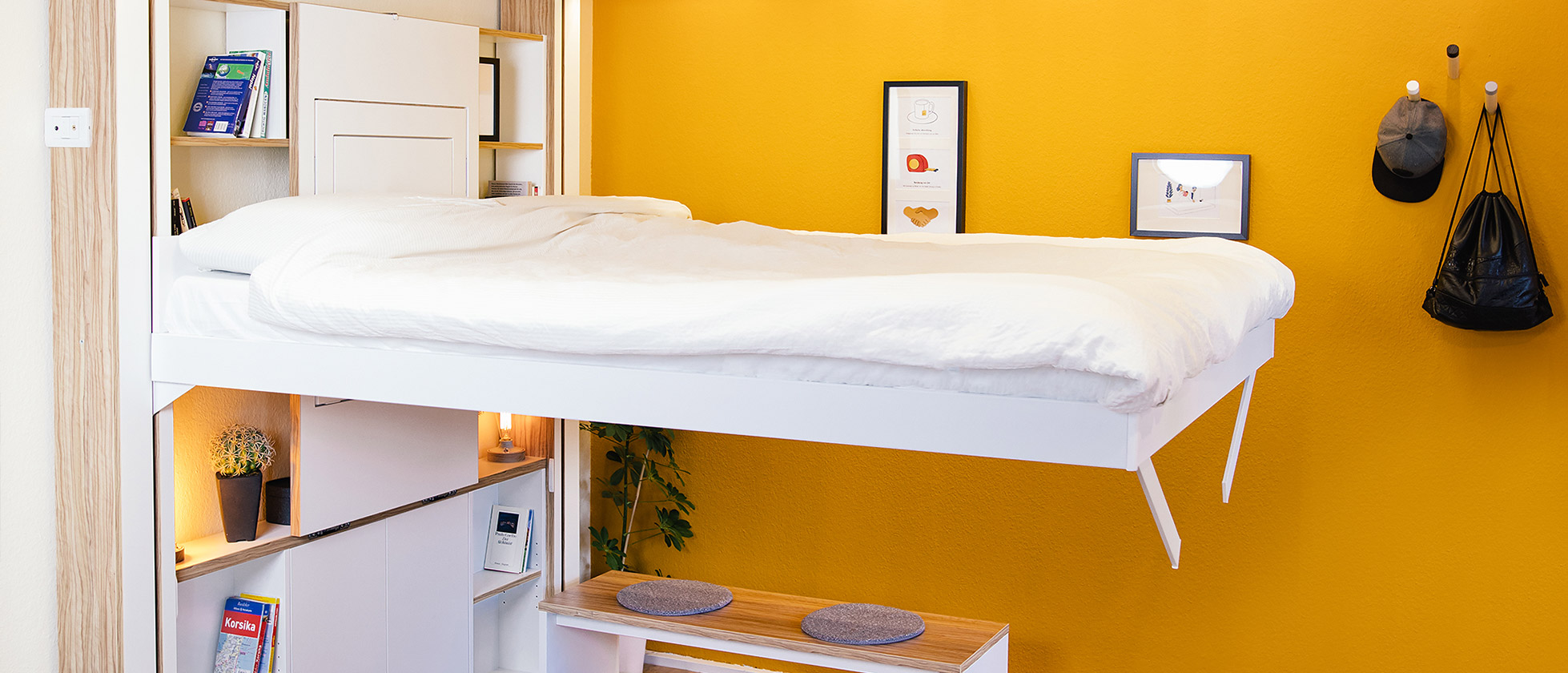 Lassen Sie ihr Bett³ innerhalb weniger Sekunden per Knopfdruck in der Decke verschwinden und schaffen damit neue Fläche in Ihrem Zuhause. Wie Sie diese Fläche nutzen ist vollkommen Ihnen überlassen: eine gemütliche Couch aufstellen, als Spielfläche für Kinder oder als Ihre neue Meditationsecke? Bett³ Element ermöglicht Ihnen all das und noch mehr. Mehr Lebensqualität innerhalb von bestehenden Strukturen - die Möglichkeiten sind beinahe unbegrenzt.